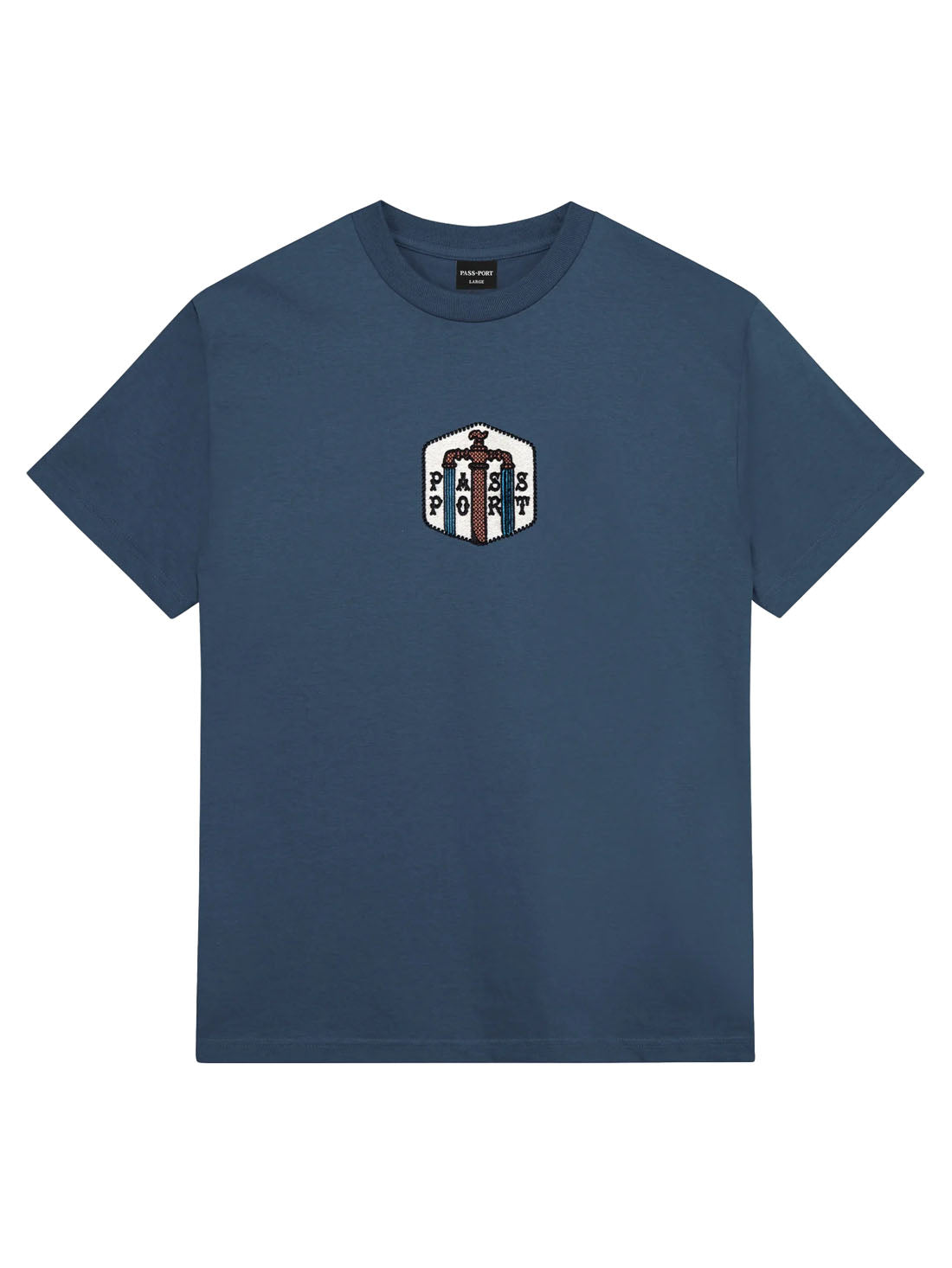 Introducing Range #45: The Pass-Port Water Supply tee in harbour blue is made from 100% cotton and features a direct embroidered front graphic. It offers the signature Pass-Port fit.