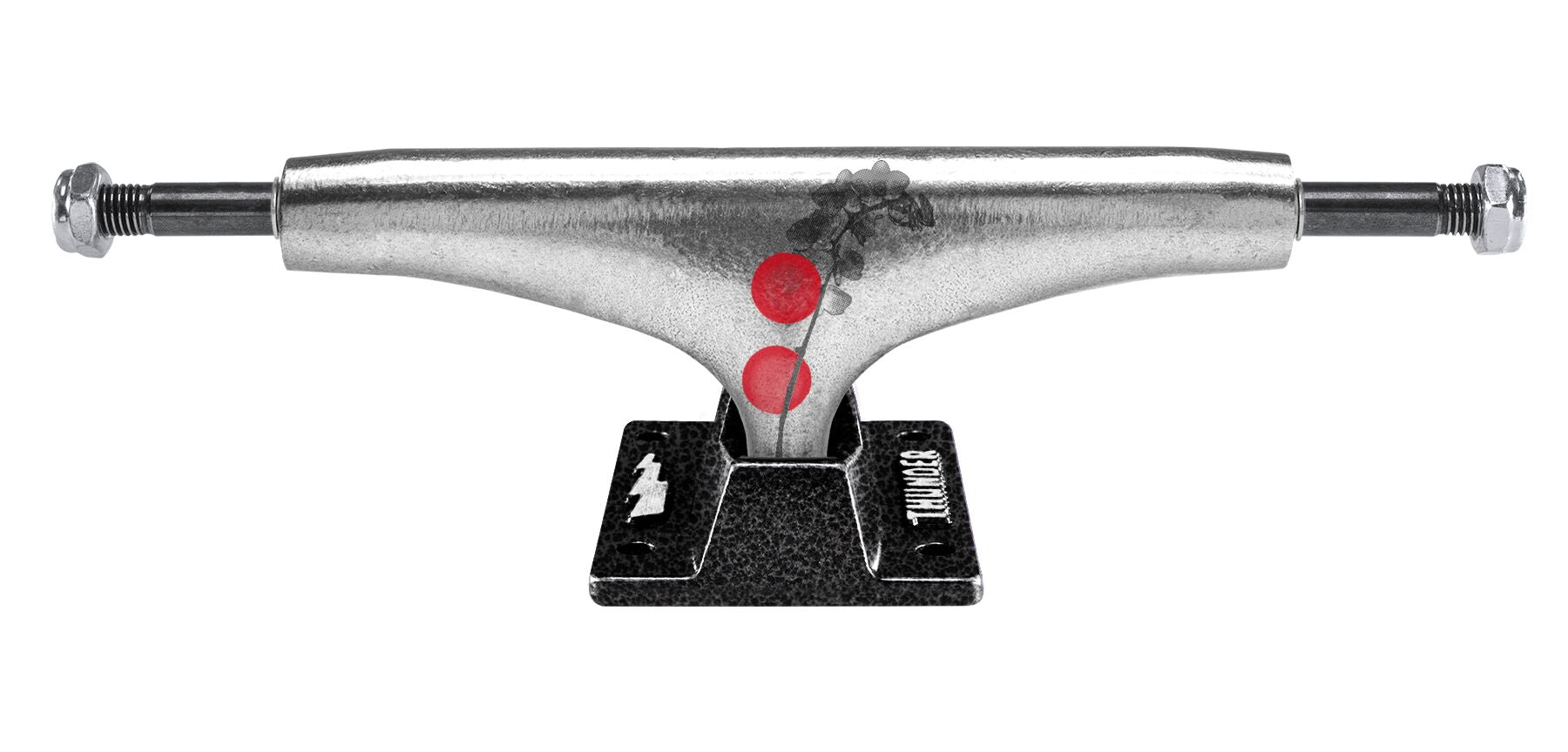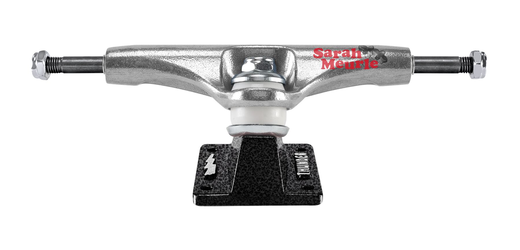 polished hanger w/ custom splatter black forged baseplateextra-strong reinforced hollow axlepremium grade hollow kingpinopaque white 90du Thunder bushings